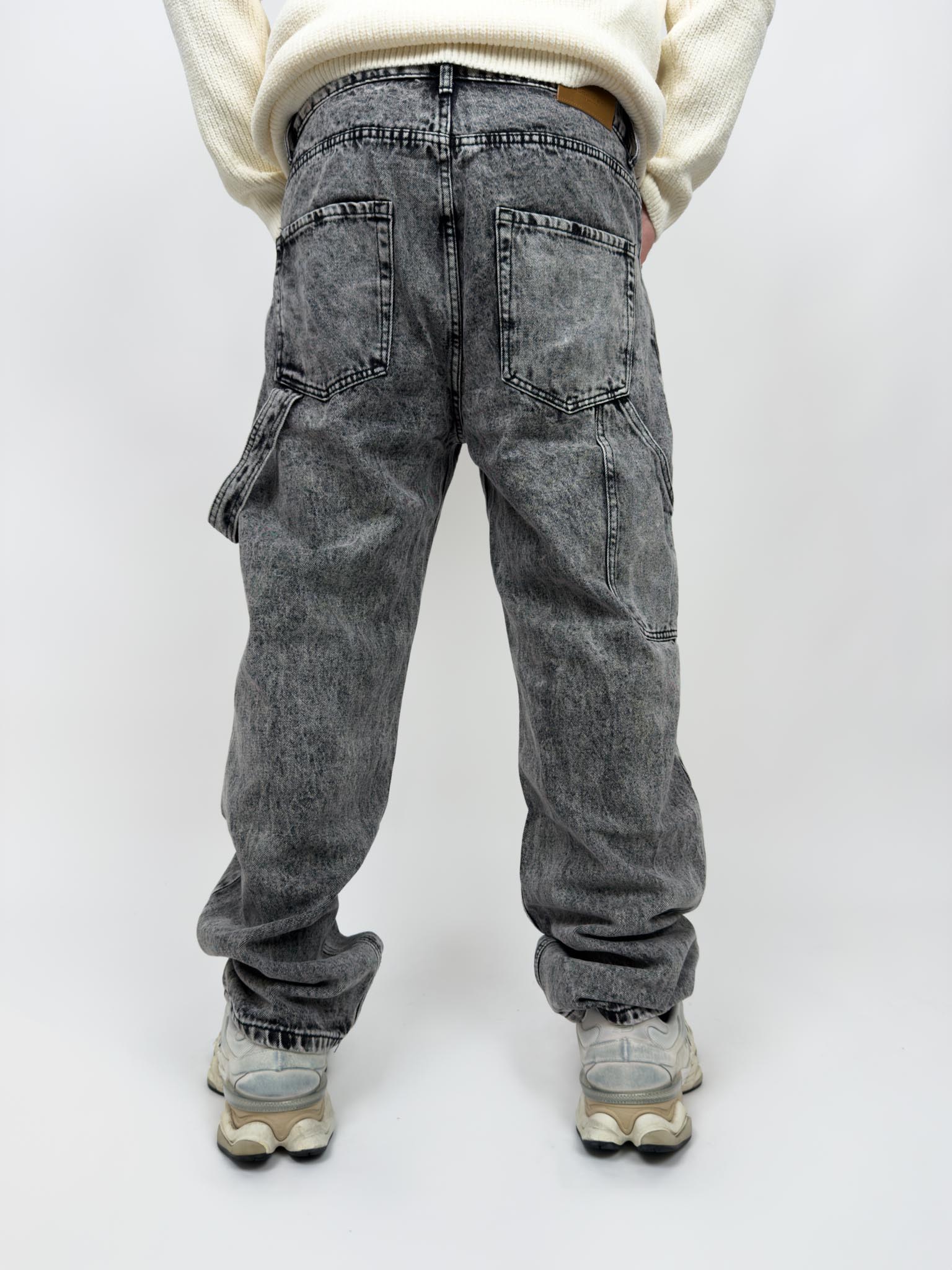 Jeans cargo nero slavato gamba molto ampia
