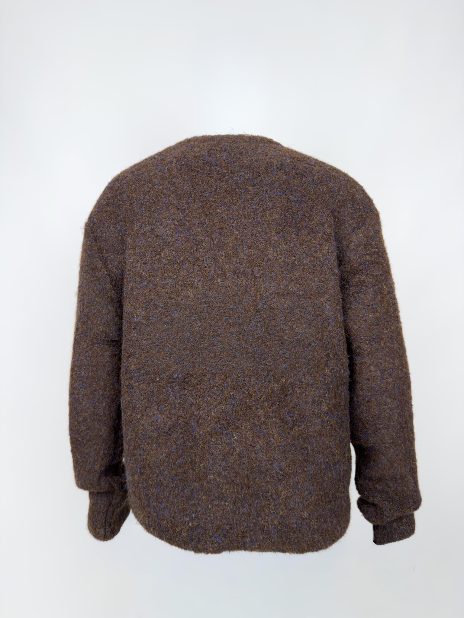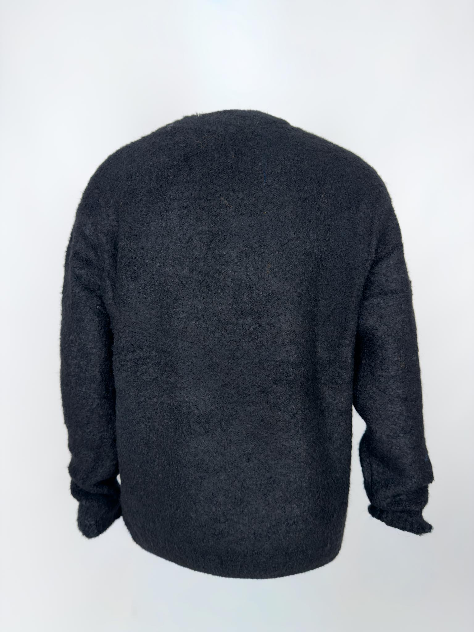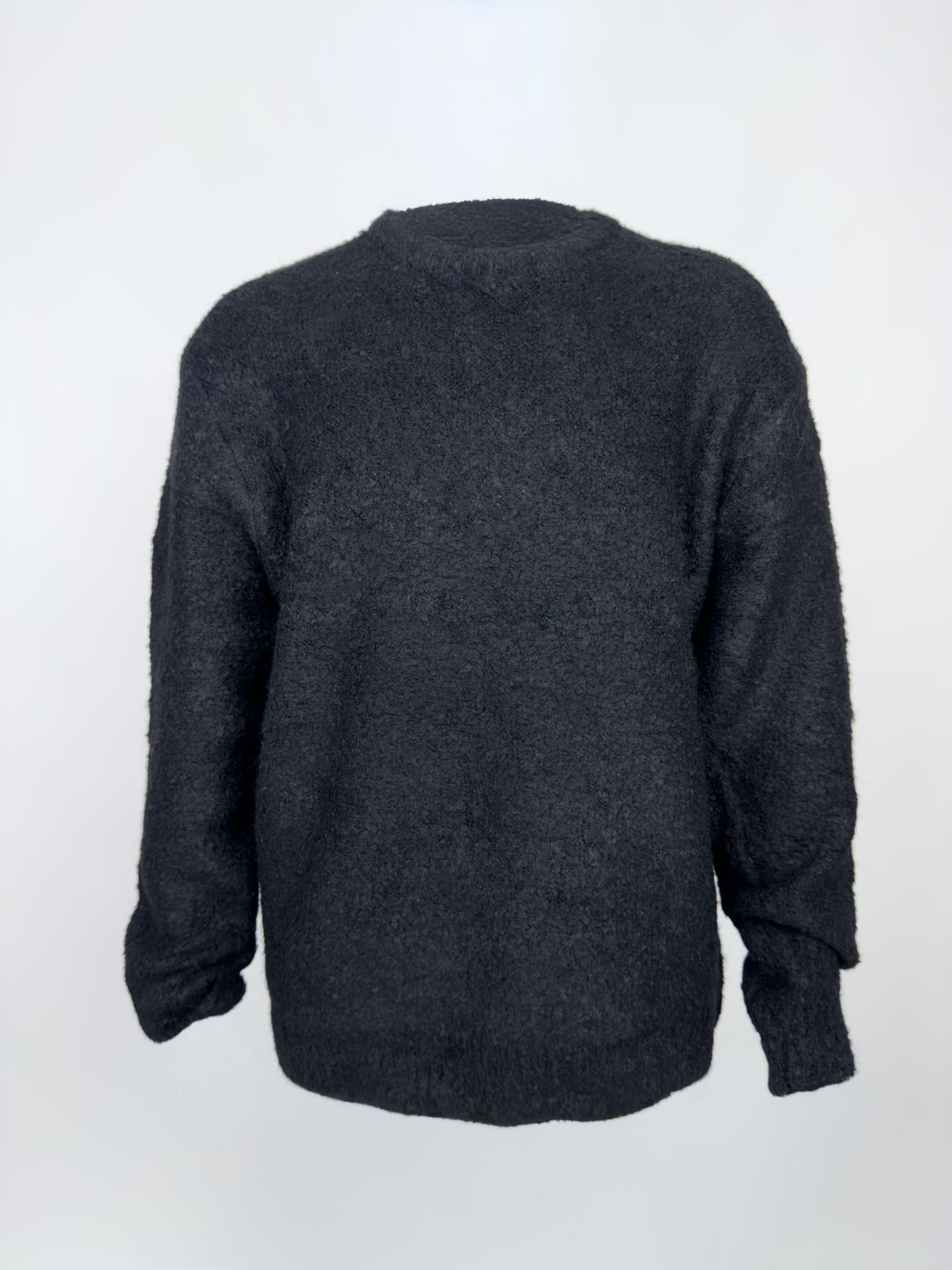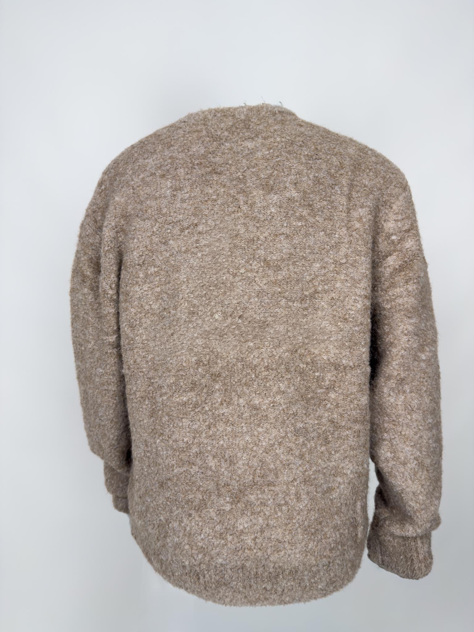 Maglia girocollo in misto lana effetto bouclè, fondo e polsi rifiniti