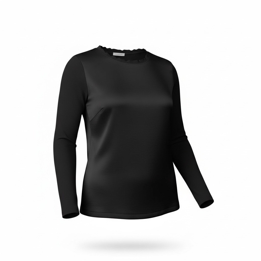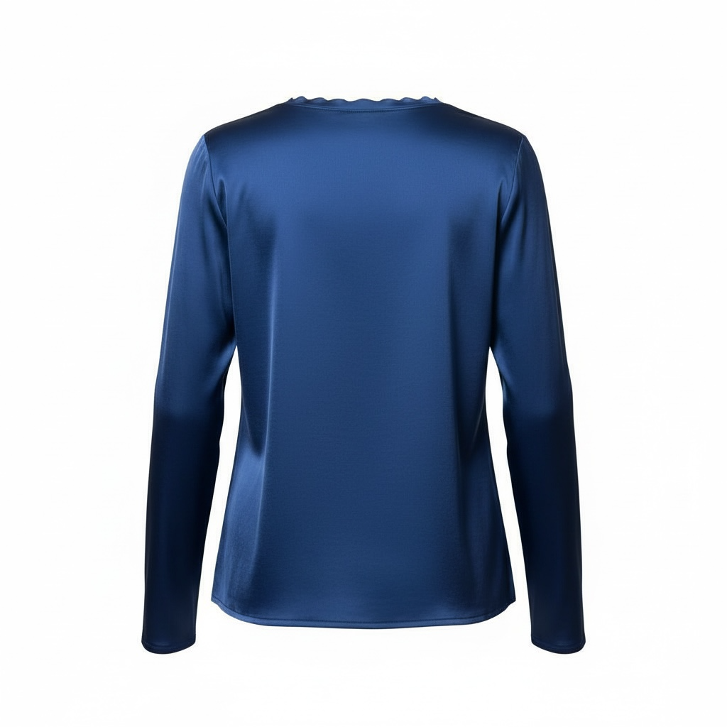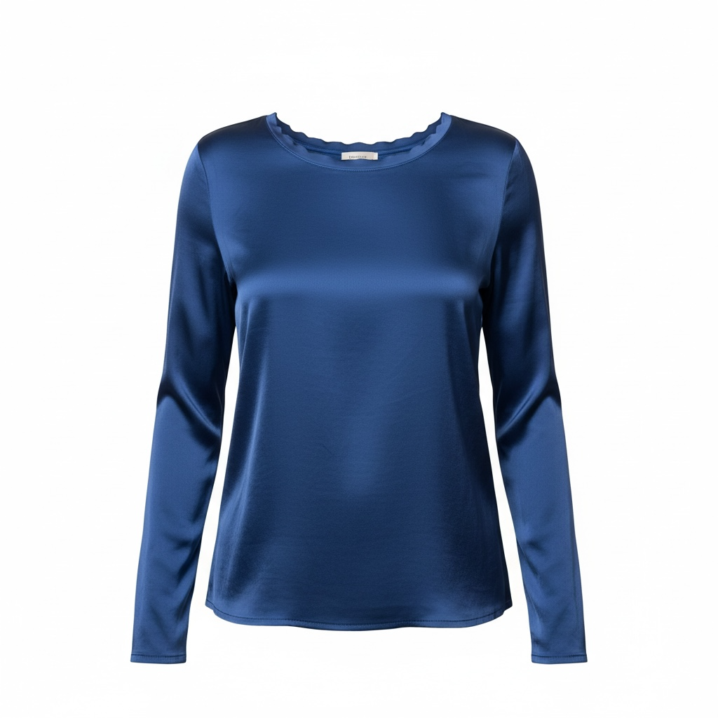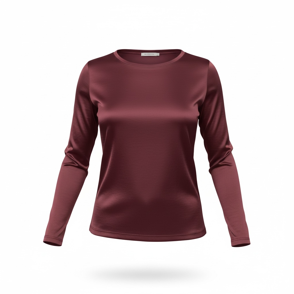 Maglia girocollo in satin sul d’avanti e maglina di viscosa dietro.