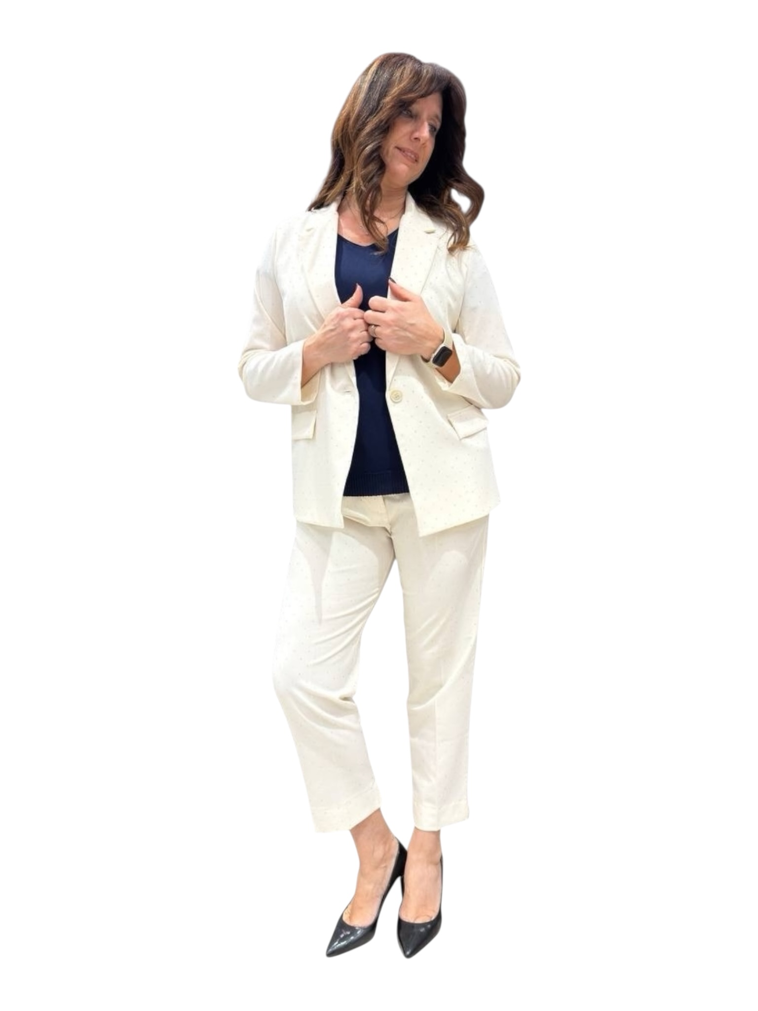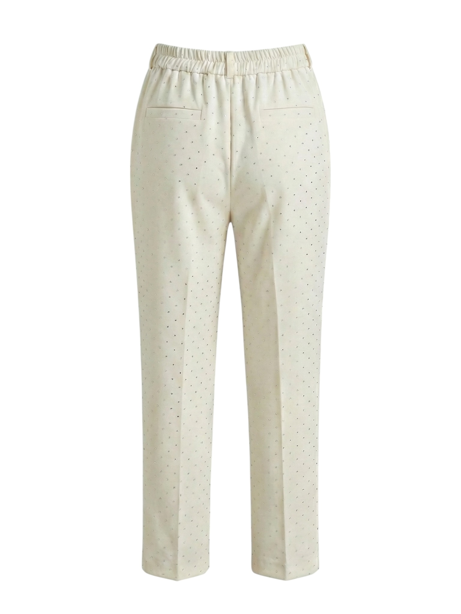 Pantalone gamba dritta con elastico in vita e punti luce.